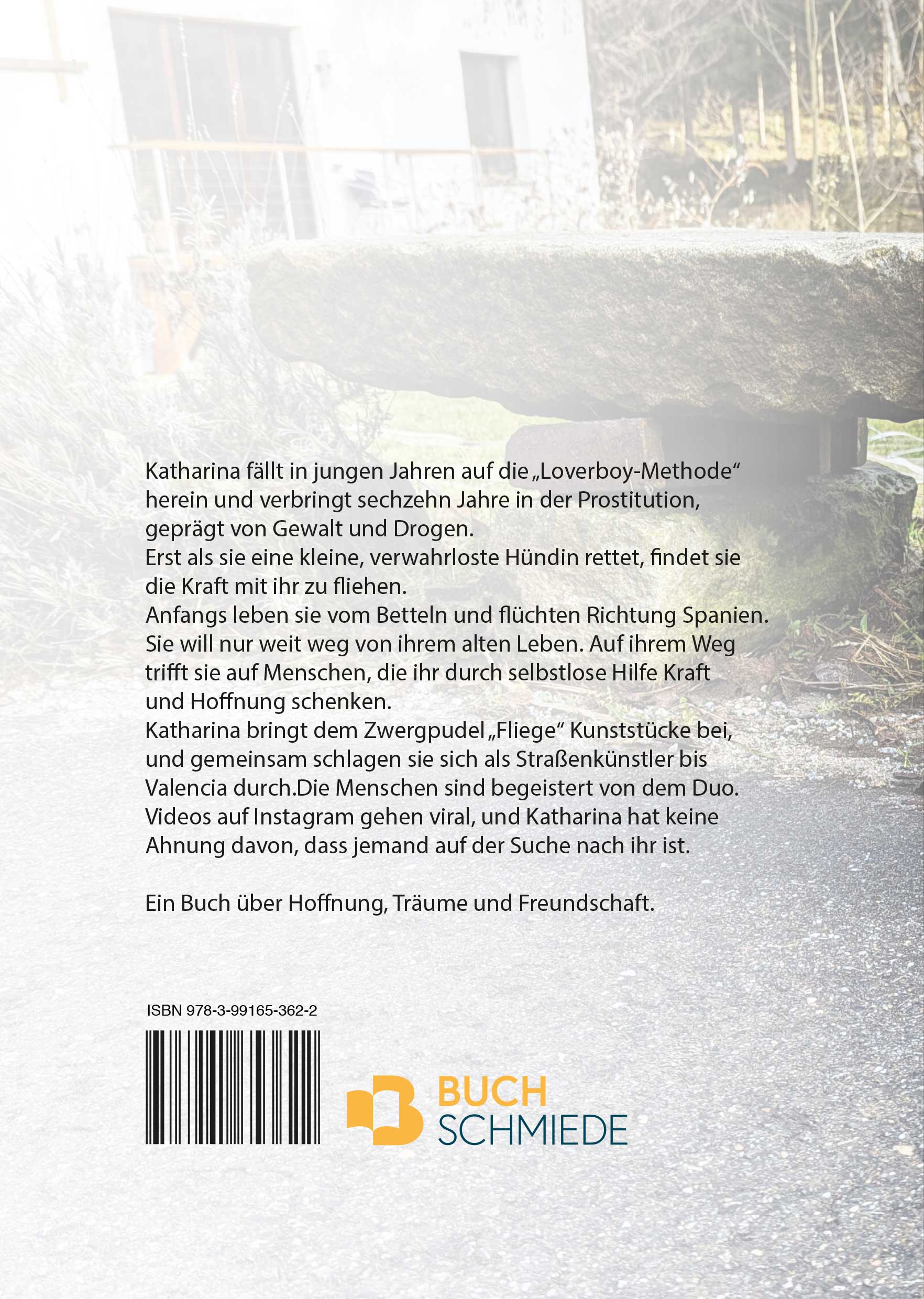 Katharina findet in einer Mülltonne einen Hundewelpen. Um ihn zu retten findet sie die Kraft aus dem Bordell, und vor ihren Peinigern, zu fliehen. Sie hat keinen Plan, schläft unter Brücken und isst, was andere wegwerfen. Nach Wochen als Obdachlose beschließt sie, mit "Fliege" nach Spanien zu pilgern und dort Arbeit zu suchen. Ein Buch voller Hoffnung und Begegnungen.